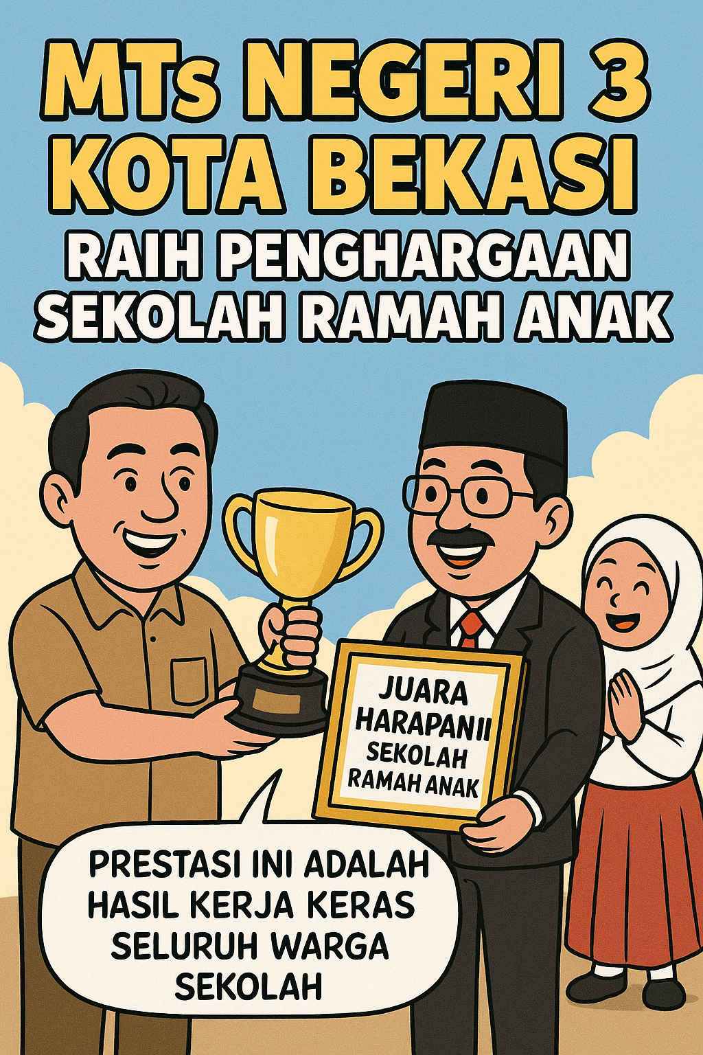 MTs Negeri 3 Kota Bekasi kembali menorehkan prestasi membanggakan. Baru-baru ini, sekolah tersebut meraih penghargaan Juara Harapan II Sekolah Ramah Anak Tingkat SD/MI se-Kota Bekasi dalam rangka memperingati Hari Anak Nasional.
