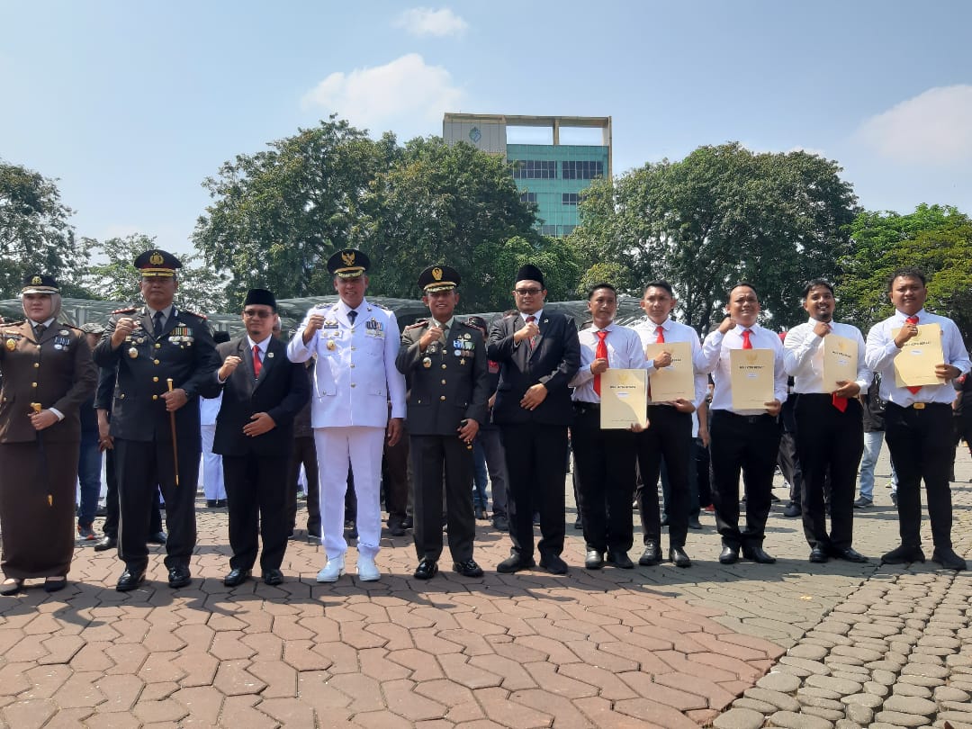 Penghargaan tersebut diserahkan langsung oleh Wali Kota Bekasi, Dr. Tri Adhianto, S.E., M.M., didampingi Ketua DPRD Kota Bekasi Dr. Sardi Effendi, S.Pd., M.M., Kapolres Metro Bekasi Kota Kombes Pol. Kusumo Wahyu Bintoro, S.H., S.I.K., M.H., Dandim 0507/Bekasi Letkol Arm Krisrantau Hermawan, S.H., M.I.Pol., dan Kajari Kota Bekasi Dr. Sulvia Triana Hapsari, S.H., M.Hum.