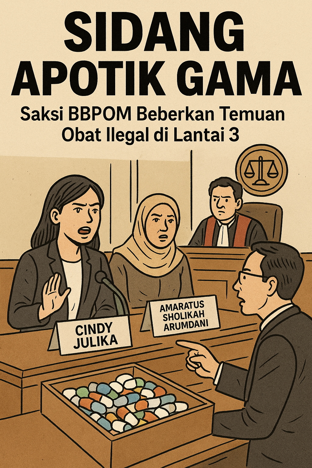 Dalam persidangan, saksi Cindy Julika mengungkapkan bahwa pada 15 Februari 2024 ia diperintahkan melakukan investigasi dengan metode Under Cover Day di Apotek Gama Cabang Cilegon. Saat itu, ia berpura-pura menjadi pembeli obat sakit gigi dan mendapatkan obat yang diduga tidak memiliki merek resmi.