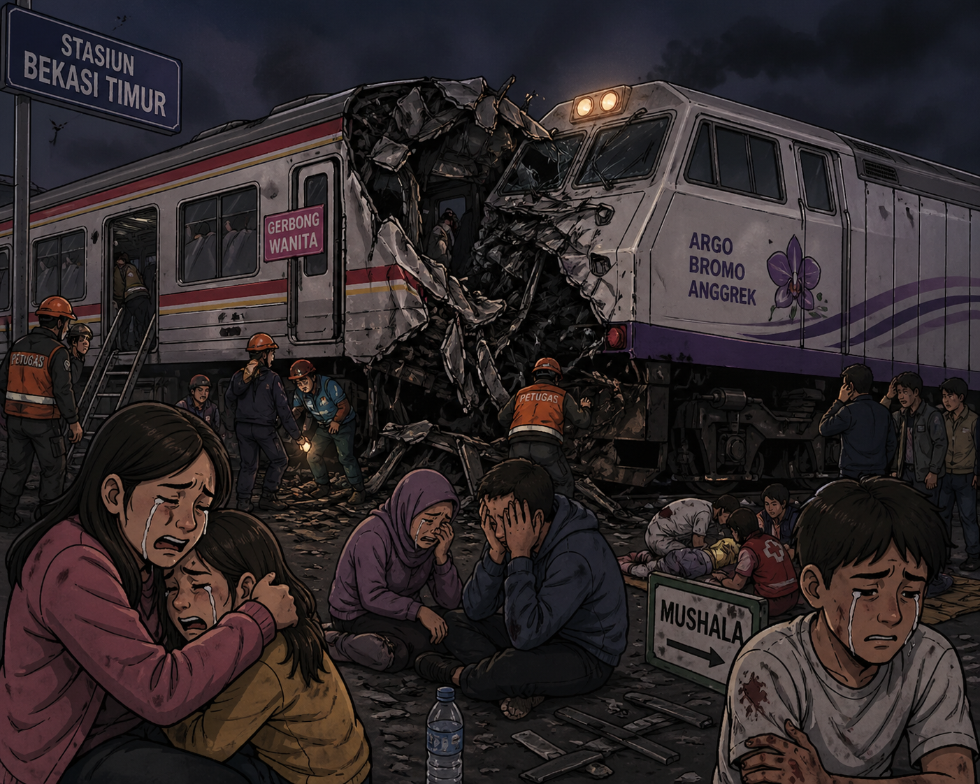 Insiden kecelakaan kereta api terjadi di Stasiun Bekasi Timur pada Senin malam (27/4/2026) sekitar pukul 20.57 WIB. Sebuah kereta commuter line (KRL) dilaporkan tertabrak dari belakang oleh kereta jarak jauh Argo Bromo Anggrek, mengakibatkan kerusakan parah pada bagian belakang rangkaian serta menimbulkan korban luka.