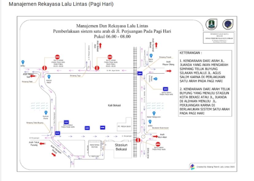 Dalam upaya mengurai kepadatan dan kemacetan lalu lintas di kawasan Jalan Perjuangan, Dinas Perhubungan Kota Bekasi memberlakukan Sistem Satu Arah (SSA) secara terbatas.