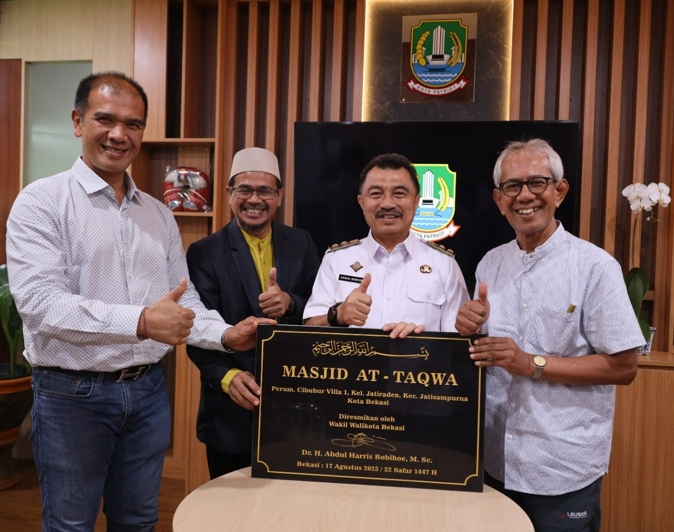 Wakil Wali Kota Bekasi Abdul Harris Bobihoe tandatangani prasasti Masjid AT Taqwa Perum Cibubur, Jati raden, Jatisampurna.